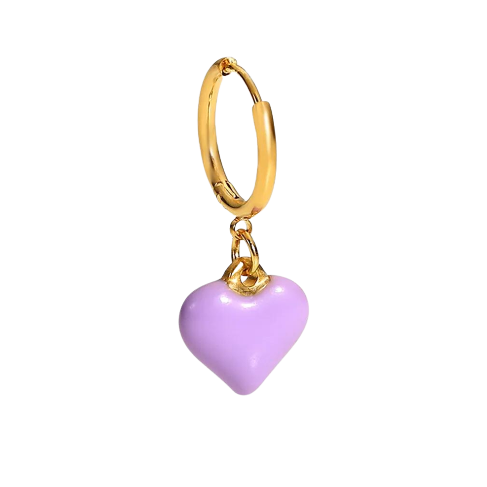 Mono-boucle avec pendentif en forme de coeur de couleur mauve.