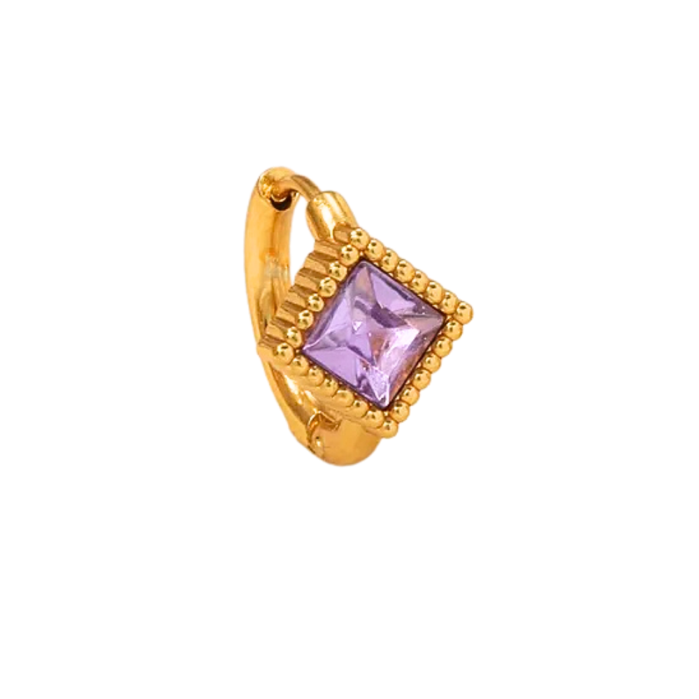 Il s'agit d'une mono-boucle composée d'une anneau décorée d'une pierre violette.