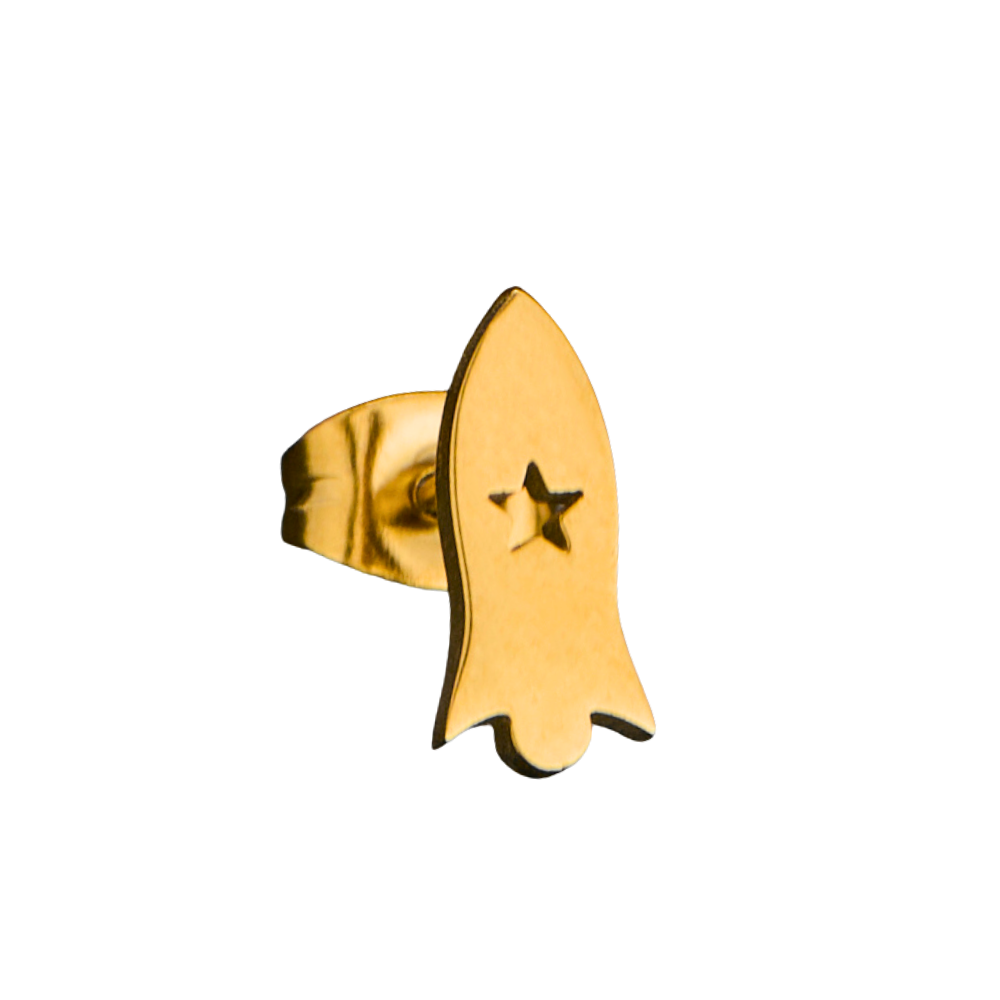 Il s'agit d'une petite puce en forme de fusée décorée avec une étoile.