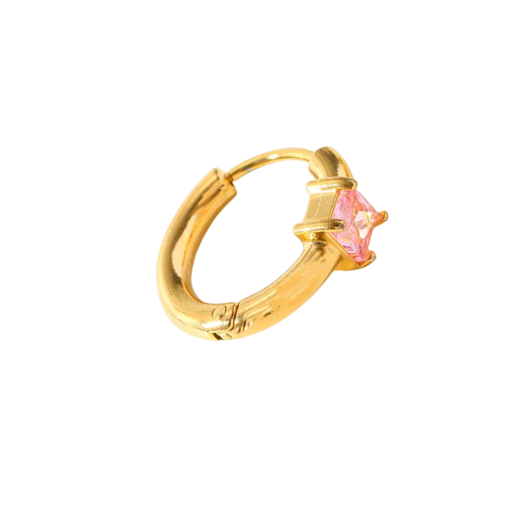 Cette mono-boucle est faite d'acier inoxydable et est en plaqué or 18 carats.