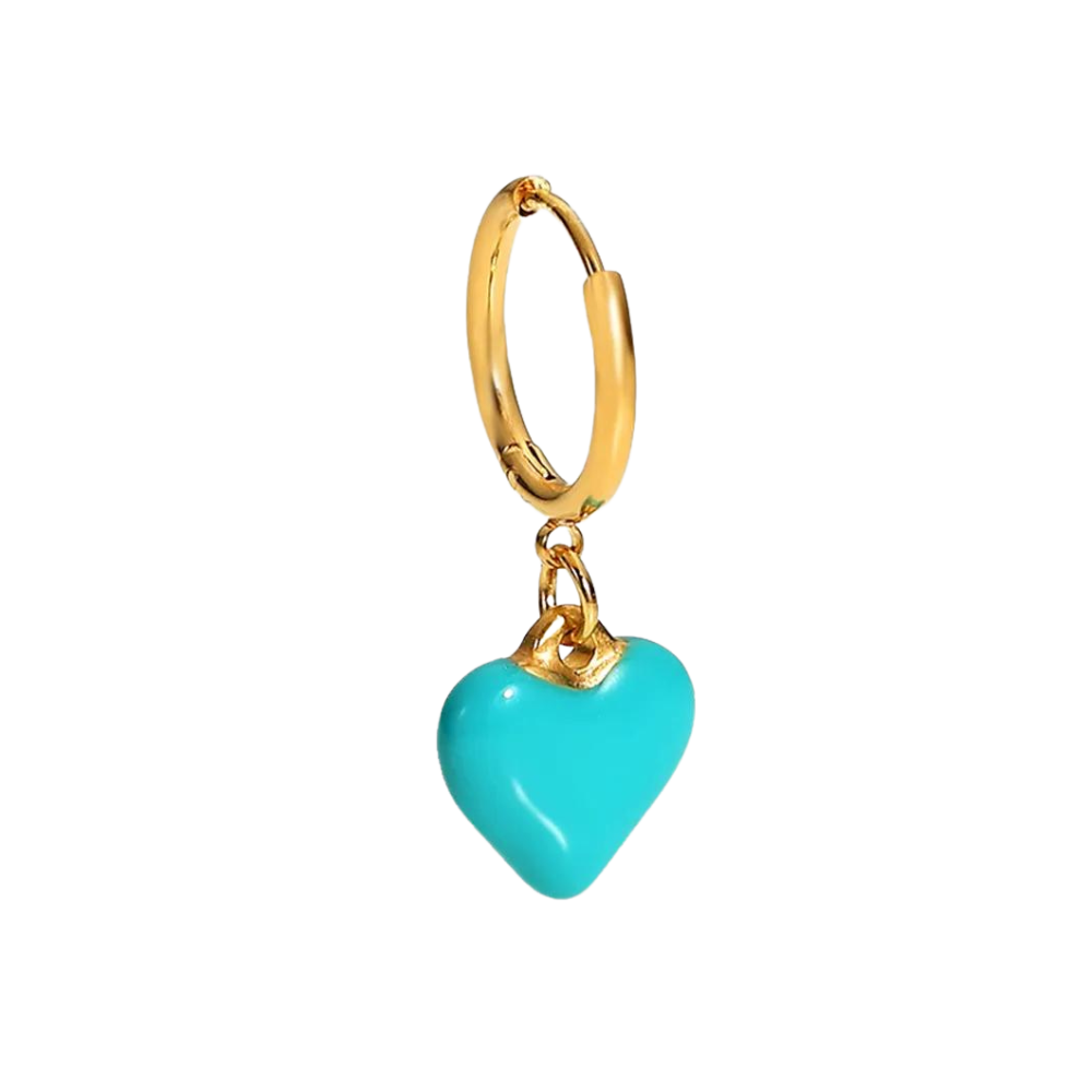 Mono-boucle avec pendentif en forme de coeur de couleur turquoise.